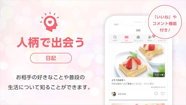 異性の日記をタイムラインで見れて、暇な時についつい見てしまう。。 他のアプリも使ってるけど、これ以上に相手のことを知れる機能はないと思う! あと、いろいろ相談に乗ってくれる婚シェルさんのプロ意識が高い!