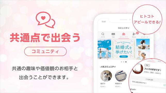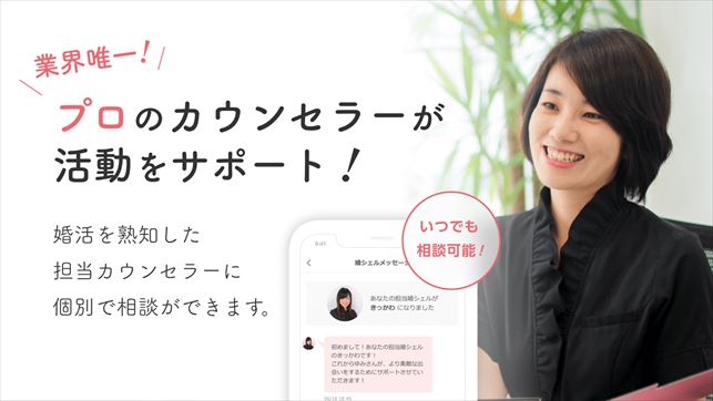 結婚相談所や婚活パーティーなどの結婚支援サービスを幅広く提供している株式会社IBJが運営する婚活マッチングアプリ。結婚相談所での経験を生かして、プロのカウンセラーが個別サポートしてくれる業界唯一のサービスがあるので初心者でも安心して利用することができます。まじめな出会いや恋愛を求めている方はもちろん、バツイチ、バツありで再婚相手を探している方もカウンセラーのサポートを受けながら相手を探すことが出来ます。会員の約80%が3ヶ月以内にカップル成立しており、東証一部上場している企業なので信頼度も抜群の婚活アプリです。