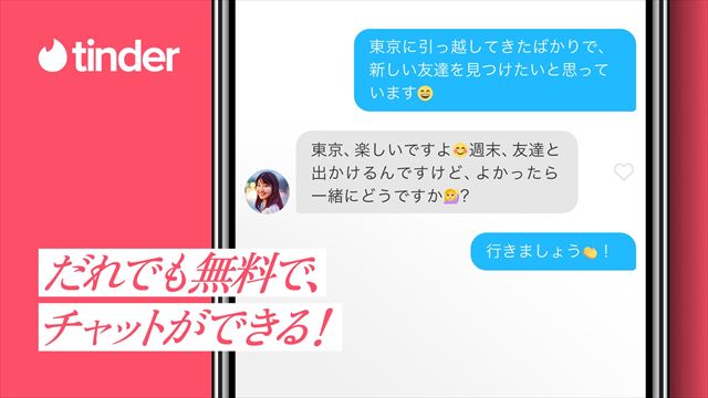 Tinderを使って暇なときの話し相手もできましたし、かっこいい人と出会うこともできました。近くに住んでいる人もわかるので会いやすいと思います。寂しいなって思ったらTinder使っちゃいますw